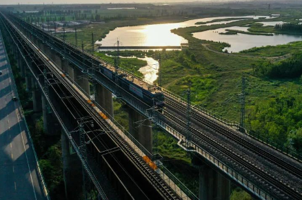 ▲重載列車行駛在大秦鐵路上(2022年7月16日攝,無人機照片)。新華社記者 曹陽 攝