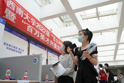 圖片▲在位于重慶市北碚區(qū)的西南大學,應屆畢業(yè)生參加“百萬英才興重慶”招聘會(2022年5月13日攝)。用人單位提供了涉及教育、人工智能、汽車制造等領(lǐng)域的3000多個崗位供畢業(yè)生選擇。新華社發(fā)(秦廷富 攝)