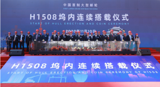 大型郵輪工程是中國船舶集團貫徹習近平總書記重要指示精神、落實國家戰(zhàn)略、滿足人民美好生活需要的重大舉措,也是中國船舶集團強化科技創(chuàng)新、促進轉(zhuǎn)型升級、推動高質(zhì)量發(fā)展的一號工程。2018年11月6日,中國船舶集團與美國嘉年華集團、意大利芬坎蒂尼集團在首屆中國國際進口博覽會上正式簽訂2+4艘13.5萬總噸Vista級大型郵輪建造合同,并舉行了中國船舶集團大型郵輪項目工程正式啟動儀式。這是我國首次簽訂真正意義上的大型郵輪建造合同,開啟了中國船舶工業(yè)建造大型郵輪的新時代。2019年10月18日,中國首制大型郵輪在外高橋造船正式開工點火進行鋼板切割,全面進入實質(zhì)性建造階段。一年多來,在中國船舶集團的堅強領導下,在中船郵輪科技發(fā)展有限公司、中船第九設計研究院工程有限公司、上海船舶工藝研究所等兄弟單位的大力支持下,外高橋造船經(jīng)受住了新冠肺炎疫情的洗禮和考驗,克服了物資采購、薄板車間流水線建設滯后等一系列困難,一步一個腳印,如期實現(xiàn)了塢內(nèi)連續(xù)搭載總裝的里程碑節(jié)點。