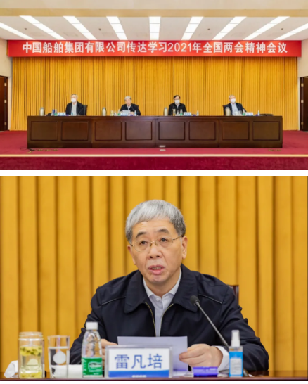3月12日,中國(guó)船舶集團(tuán)有限公司召開會(huì)議,傳達(dá)學(xué)習(xí)習(xí)近平總書記全國(guó)兩會(huì)期間重要講話精神和全國(guó)兩會(huì)精神,結(jié)合集團(tuán)公司實(shí)際,研究部署貫徹落實(shí)措施。中國(guó)船舶集團(tuán)黨組書記、董事長(zhǎng)雷凡培出席會(huì)議并講話,黨組副書記、總經(jīng)理?xiàng)罱鸪芍鞒謺?huì)議,黨組全體成員出席會(huì)議。全國(guó)政協(xié)委員董強(qiáng)在會(huì)上傳達(dá)了全國(guó)政協(xié)十三屆四次會(huì)議精神,全國(guó)人大代表劉征在會(huì)上傳達(dá)了十三屆全國(guó)人大四次會(huì)議精神。