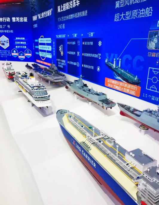 這次中國船舶集團(tuán)展區(qū)以“向海圖強(qiáng),創(chuàng)新引領(lǐng)”為主題,以“全面建設(shè)世界一流船舶集團(tuán)”的戰(zhàn)略目標(biāo)和“引領(lǐng)行業(yè)發(fā)展、支撐國防建設(shè)、服務(wù)國家戰(zhàn)略”的企業(yè)使命為主線,圍繞具有代表性、突破性、標(biāo)志性、引領(lǐng)性的自主品牌,以及高質(zhì)量裝備和工程項(xiàng)目,全面展示集團(tuán)公司在穩(wěn)定經(jīng)濟(jì)發(fā)展、帶動科技創(chuàng)新、服務(wù)民生保障、推動中國制造走向世界進(jìn)程中所取得的成就。