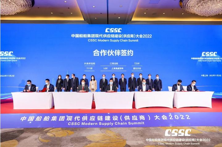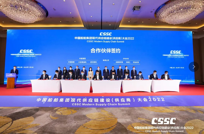 11月2日,中國船舶集團(tuán)有限公司2022現(xiàn)代供應(yīng)鏈建設(shè)(供應(yīng)商)大會在上海舉行。會議旨在貫徹落實黨的二十大精神,充分發(fā)揮中國船舶集團(tuán)作為中國船舶工業(yè)產(chǎn)業(yè)鏈鏈長的主體支撐和融通帶動作用,打造船舶工業(yè)現(xiàn)代供應(yīng)鏈高端交流平臺,凝聚廣泛共識,深化務(wù)實合作,服務(wù)國家戰(zhàn)略,共同致力建設(shè)和維護(hù)穩(wěn)定、安全、暢通、高效、可控的全球產(chǎn)業(yè)鏈供應(yīng)鏈體系,共同促進(jìn)產(chǎn)業(yè)的高端化、綠色化和智能化轉(zhuǎn)型,共同引領(lǐng)中國船舶工業(yè)高質(zhì)量發(fā)展,為“造船強(qiáng)國”和上?!拔宕笾行摹苯ㄔO(shè)貢獻(xiàn)中國船舶力量。