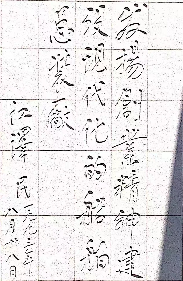 1993年8月28日,江澤民同志為大船集團(tuán)題詞“發(fā)揚(yáng)創(chuàng)業(yè)精神,建設(shè)現(xiàn)代化的船舶總裝廠”。