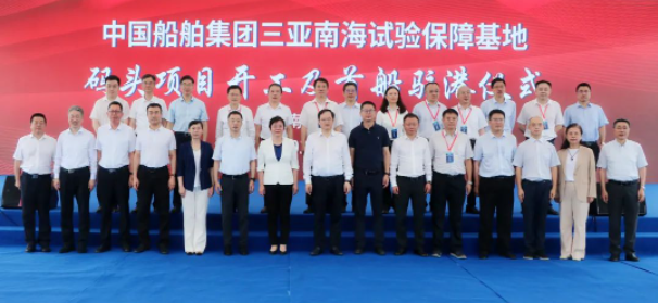 6月14日,中國船舶集團(tuán)有限公司三亞南海試驗(yàn)保障基地碼頭項(xiàng)目開工及首船駐港儀式在三亞舉行。中國船舶集團(tuán)黨組副書記、總經(jīng)理?xiàng)罱鸪沙鱿瘍x式并宣布項(xiàng)目開工,黨組成員、副總經(jīng)理盛紀(jì)綱出席儀式并致辭,國防科工局系統(tǒng)工程四司副司長蘇懷山,海南省副省長謝京,三亞市委常委、常務(wù)副市長盛勇軍出席儀式。
