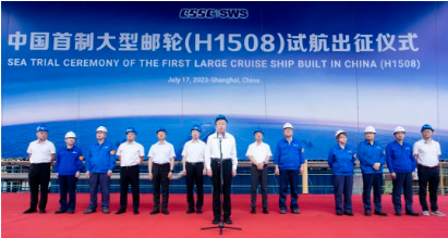 7月17日清晨7時(shí)許,隨著中國船舶集團(tuán)有限公司黨組書記、董事長溫剛一聲令下,白色涂裝、流線型船體、身系“敦煌飛天彩帶”的首艘國產(chǎn)大型郵輪“愛達(dá)·魔都號”緩緩駛出中國船舶集團(tuán)外高橋造船4號碼頭,正式出海試航。集團(tuán)公司黨組成員、副總經(jīng)理盛紀(jì)綱出席試航出征儀式并致辭。