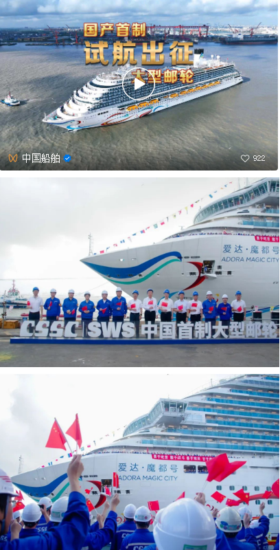 自2019年10月首艘國產(chǎn)大型郵輪開工建造以來,中國船舶集團(tuán)及相關(guān)成員單位深入貫徹落實(shí)習(xí)近平總書記重要指示批示精神和黨中央決策部署,通過引進(jìn)消化和自主創(chuàng)新,相繼開展了郵輪設(shè)計(jì)、建造、項(xiàng)目管理等專項(xiàng)攻關(guān),項(xiàng)目工程穩(wěn)步推進(jìn),各項(xiàng)節(jié)點(diǎn)順利完成,一系列科技創(chuàng)新成果落地開花。預(yù)計(jì)首制船將于今年底完工交付。