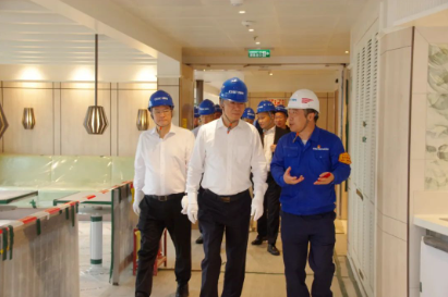 辛國斌一行深入考察國產(chǎn)首制大型郵輪建造現(xiàn)場,實地了解大型郵輪工程進(jìn)展和技術(shù)攻關(guān)情況,并前往集配中心對外高橋造船物流倉儲數(shù)字化建設(shè)和智能倉儲管理進(jìn)行調(diào)研。
