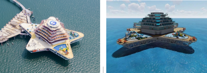 以濱海城市為依托,該方案重點(diǎn)建設(shè)需求旺盛、基礎(chǔ)好、見效快的“海洋文旅+深海養(yǎng)殖+海上風(fēng)電+海洋信息管網(wǎng)”4個(gè)要素單元,釋放旅游、養(yǎng)殖、綠色能源耦合效應(yīng)。綜合體采用模塊化設(shè)計(jì)、區(qū)域化協(xié)同部署,由濱海向深遠(yuǎn)海帶狀輻射,布局建設(shè)游輪游艇群、養(yǎng)殖文旅平臺(tái)、深海養(yǎng)殖產(chǎn)業(yè)園、分布式海上風(fēng)電場(chǎng)及智能微電網(wǎng)、深海移動(dòng)養(yǎng)殖工廠和海洋信息管網(wǎng)等風(fēng)漁文旅結(jié)合項(xiàng)目。以郵輪游艇連接海上設(shè)施,構(gòu)建海上旅游娛樂交通網(wǎng),以中小型郵輪航線實(shí)現(xiàn)沿海城市綜合體間串聯(lián),構(gòu)建沿海城市海上旅游觀光帶,同時(shí)培育郵輪與康養(yǎng)休閑岸?;?dòng)融合模式,捕捉、帶動(dòng)、滿足多元化潛在消費(fèi)需求,打造風(fēng)漁文旅等一二三產(chǎn)業(yè)融合新業(yè)態(tài),形成沿海藍(lán)色海洋經(jīng)濟(jì)帶。