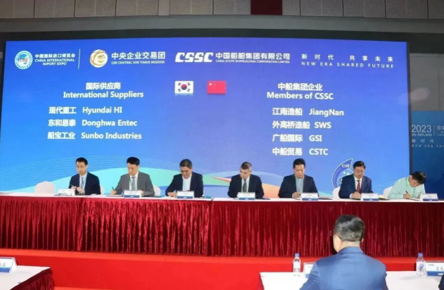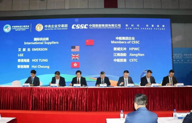 簽約儀式上,中國(guó)船舶集團(tuán)旗下7家成員單位與來(lái)自9個(gè)國(guó)家和地區(qū)的17家國(guó)際合作伙伴進(jìn)行了20個(gè)項(xiàng)目的集中簽約,累計(jì)總金額達(dá)4.82億美元,同比增長(zhǎng)18%。具體看,交易產(chǎn)品涵蓋主機(jī)、再液化裝置、滾裝設(shè)備、液化天然氣(LNG)供氣系統(tǒng)、液貨系統(tǒng)等船舶建造領(lǐng)域的各類重要配套設(shè)備。這些簽約將有效推動(dòng)國(guó)際國(guó)內(nèi)市場(chǎng)融合互鑒,為國(guó)際船舶交易市場(chǎng)的日益繁榮貢獻(xiàn)中國(guó)船舶力量。