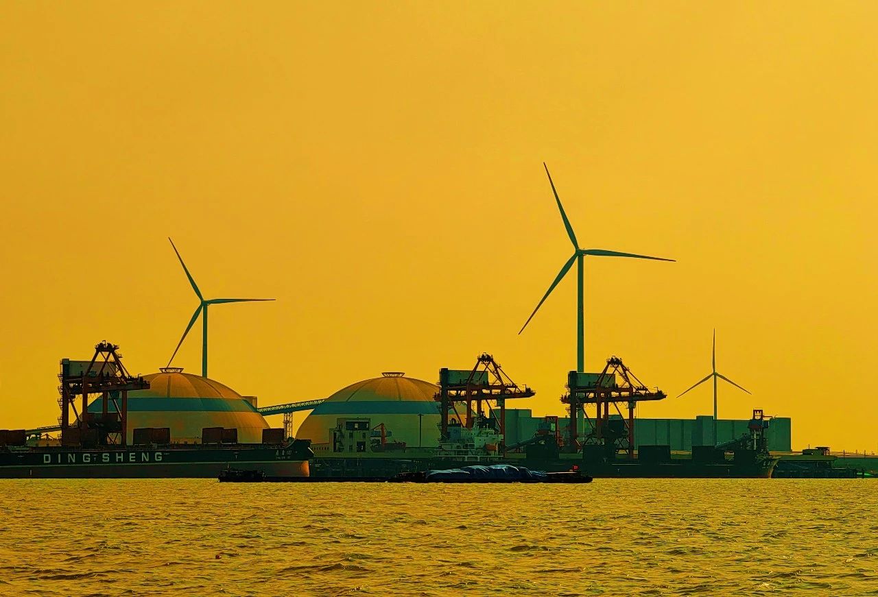 中船澄西建造的風(fēng)力發(fā)電塔塔筒矗立在長江邊,為千家萬戶送去源源不斷的綠色能源。