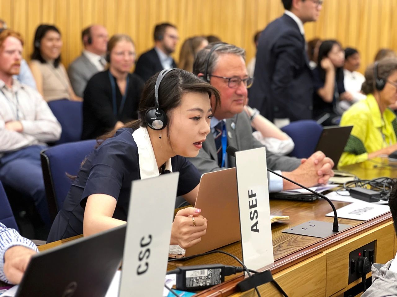 2023年7月7日,活躍造船專家聯(lián)盟(ASEF)秘書長、中國船舶集團(tuán)十一所汪璇代表船舶工業(yè)界參與國際海事組織(IMO)海洋環(huán)境保護(hù)委員會第80次(MSC107)會議。會上,汪璇代表文件MEPC80/7/7的共同提出方發(fā)言,有力支撐中國代表團(tuán)在船用碳捕集技術(shù)(OCCS)的法律地位的立場,為國際海事事務(wù)貢獻(xiàn)中國智慧,維護(hù)國家船舶工業(yè)利益。