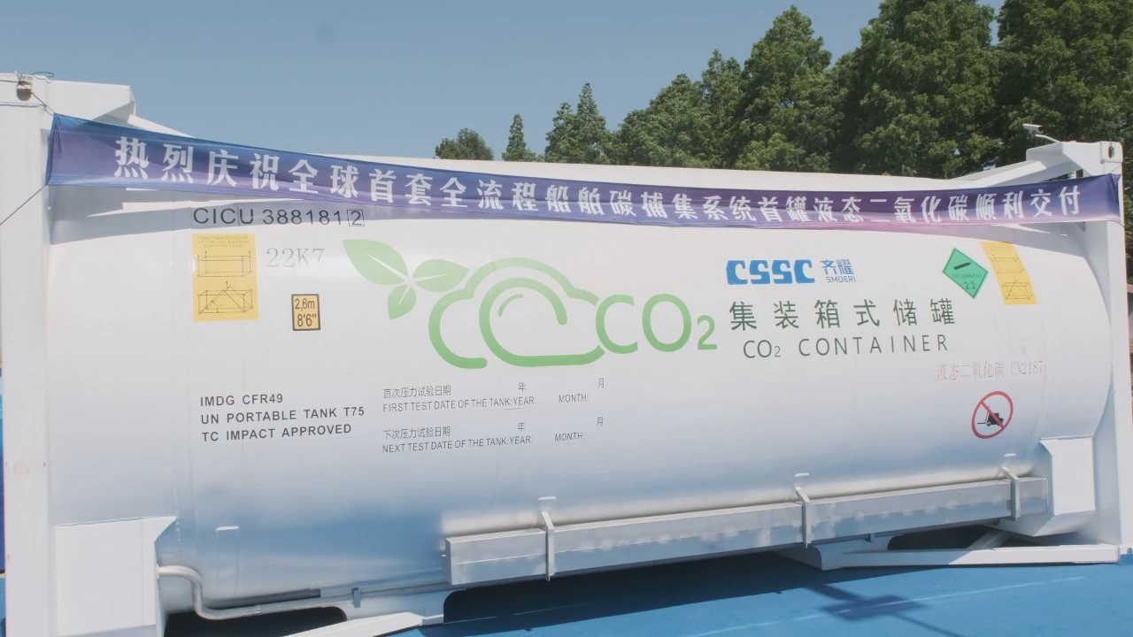 2024年5月10日,“全球首套全流程船舶碳捕集系統(tǒng)首罐液態(tài)二氧化碳接收儀式暨交流會” 在上海舉辦,中國船舶集團(tuán)所屬上海齊耀環(huán)??萍加邢薰緦抖诵遁d的首罐液態(tài)二氧化碳正式交付使用方,標(biāo)志著船用碳捕集技術(shù)在全球范圍內(nèi)首次完成“二氧化碳捕集-液化存儲-卸岸-轉(zhuǎn)運(yùn)-再利用”的全流程生態(tài)閉環(huán),成為船用碳捕集產(chǎn)業(yè)里程碑式的案例。
