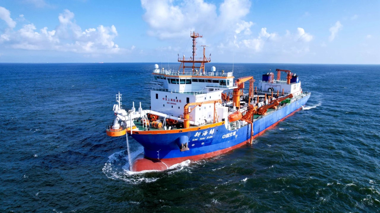 國內(nèi)首艘雙燃料動力系統(tǒng)大型耙吸挖泥船“新海鱘”輪交付