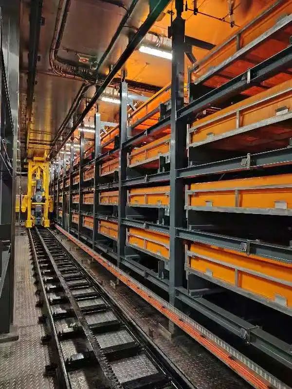 # 巖心庫內(nèi)部配置了船載巖心庫自動(dòng)倉儲(chǔ)系統(tǒng),實(shí)現(xiàn)了巖心托盤的自動(dòng)存??;