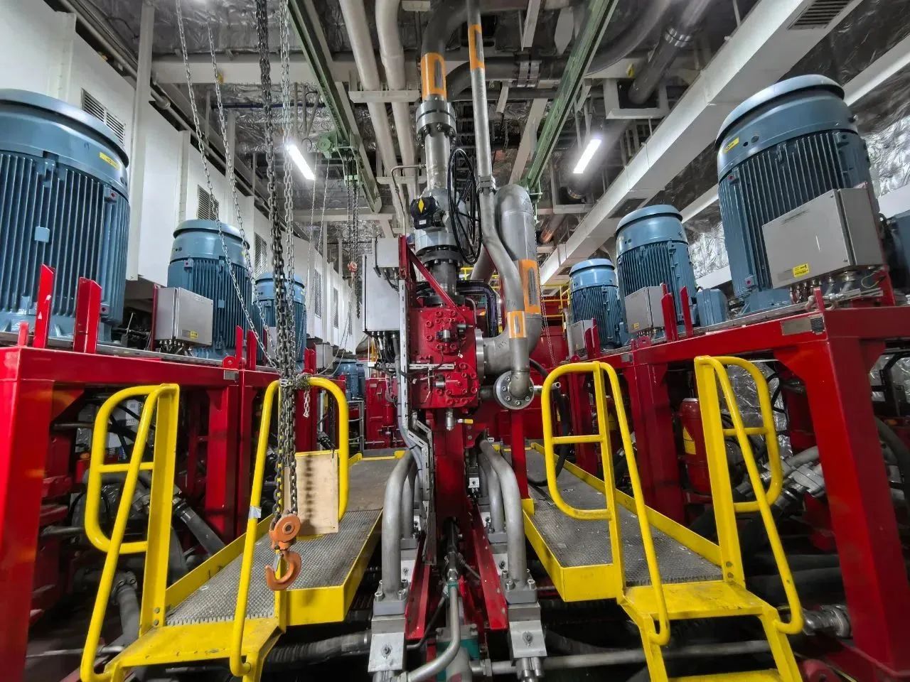 “夢想”號鉆井系統(tǒng)提升能力強(qiáng)、反應(yīng)速度快,離不開配套的液壓提升系統(tǒng)。系統(tǒng)配有12臺泵,裝機(jī)容量達(dá)4100千瓦,高壓管路長達(dá)8000多米,直徑達(dá)270多毫米,最高壓力為350公斤/平方厘米,是家庭高壓鍋耐壓的175倍。