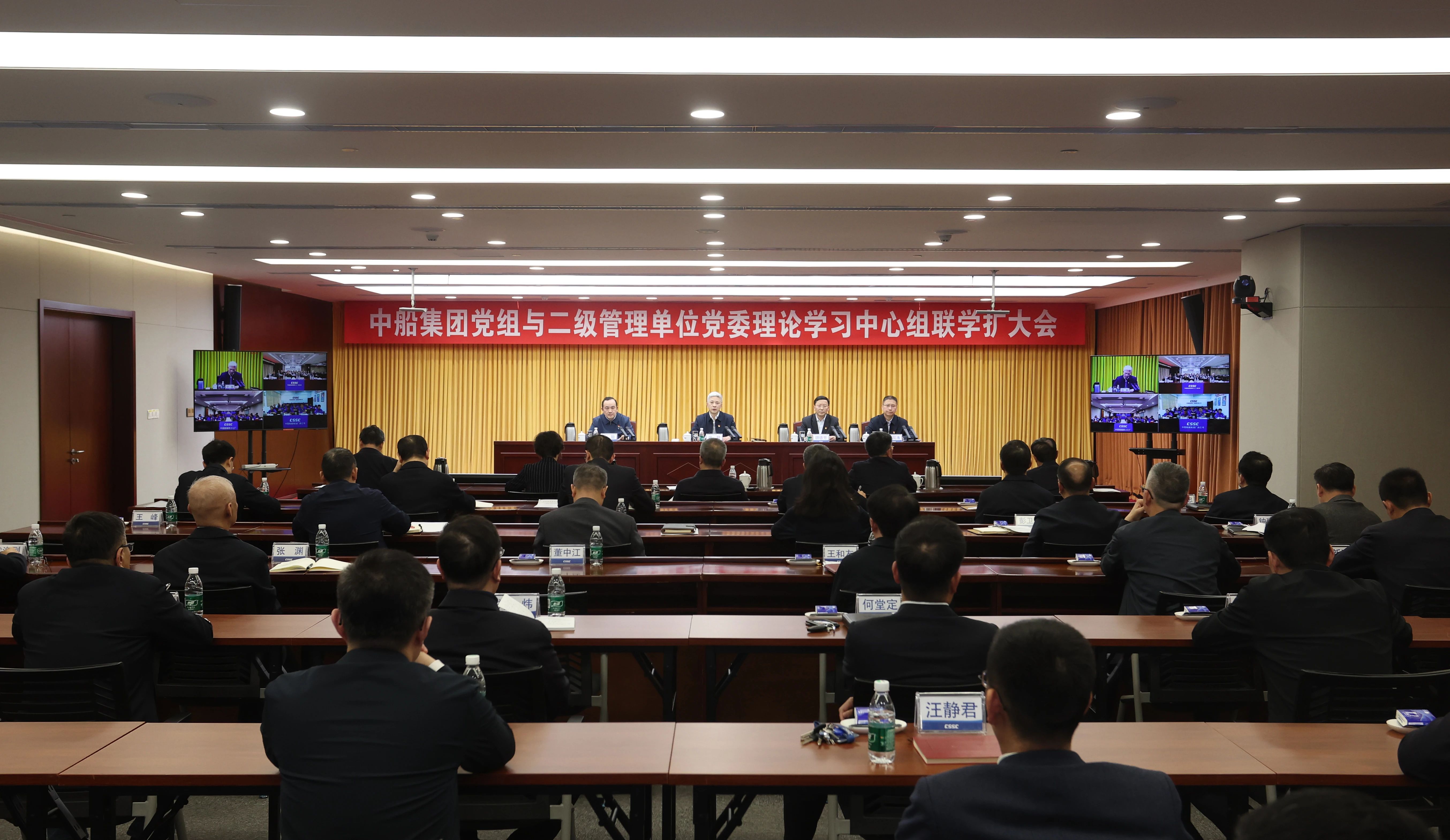 3月14日,中國(guó)船舶集團(tuán)有限公司召開(kāi)黨組與二級(jí)管理單位黨委理論學(xué)習(xí)中心組聯(lián)學(xué)擴(kuò)大會(huì),傳達(dá)學(xué)習(xí)全國(guó)兩會(huì)精神。中船集團(tuán)黨組書記、董事長(zhǎng)徐鵬主持會(huì)議并講話,集團(tuán)公司黨組理論學(xué)習(xí)中心組成員參會(huì)。