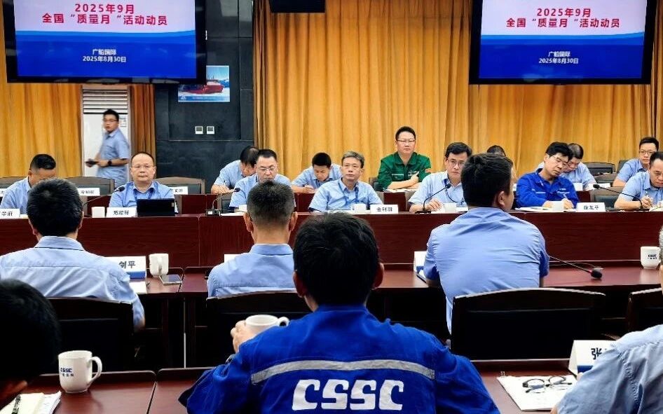廣船國際召開2025年“質(zhì)量月”活動動員會,通過宣教結(jié)合、查改并舉的方式,從質(zhì)量意識教育培訓(xùn)、質(zhì)量提升專項行動、質(zhì)量文化建設(shè)三個方面,策劃部署了質(zhì)量門建設(shè)實(shí)施要求宣貫、“十五五”質(zhì)量專項規(guī)劃研討、“黨建+質(zhì)量”研討交流等23個活動項目,持續(xù)優(yōu)化質(zhì)量管理體系建設(shè),深入推進(jìn)精細(xì)化質(zhì)量管理提升。