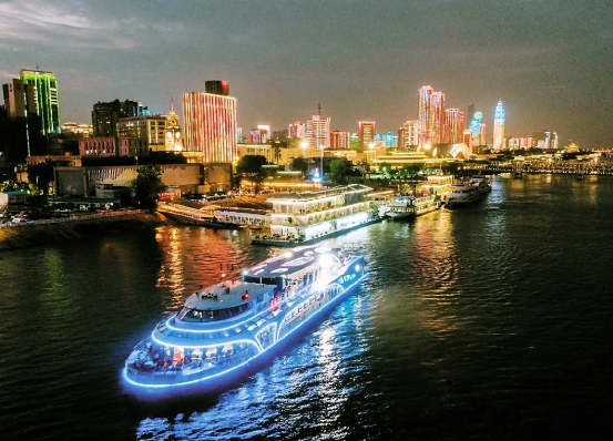 我國(guó)第一艘新能源全電動(dòng)商旅游船“君旅號(hào)”于近日在長(zhǎng)江正式起航。該船全套動(dòng)力系統(tǒng)均由中國(guó)船舶集團(tuán)七一二所研發(fā)制造?!熬锰?hào)”長(zhǎng)53.2米,寬14.3米,共2層,可搭乘300名游客,游覽線路處于長(zhǎng)江主軸核心區(qū)域,1小時(shí)就可觀賞江漢關(guān)、黃鶴樓、長(zhǎng)江燈光秀等景觀。