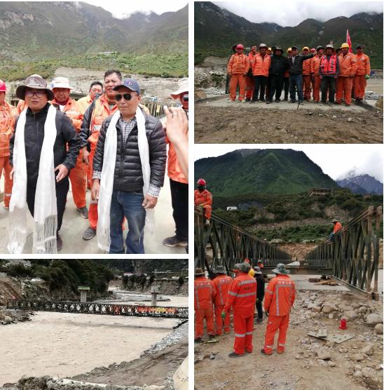 向玉光克服高海拔帶來的高寒缺氧、呼吸急促等高原反應(yīng),馬上投入工作,很快提供了科學(xué)的架設(shè)方案,指導(dǎo)那曲救援隊伍在不到六天的時間里成功架設(shè)起一座三排單層48米裝配式公路鋼橋。