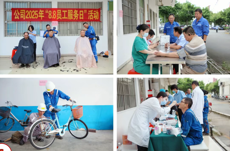 服務(wù)日當(dāng)天,廣船國際所屬文沖修造設(shè)置了量血壓、理發(fā)、縫補(bǔ)衣服、修理自行車、磨刀具、健康咨詢、口腔義診等多個義務(wù)服務(wù)項目,以貼心實用的便民舉措為勞務(wù)工送去關(guān)懷與便利,讓服務(wù)日充滿暖心氛圍。